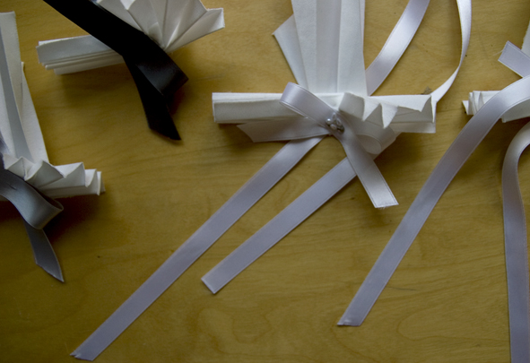 Little details I made these little accessories for the groom, for the best man and for the bridesmaids. The fabric is leftover from the brides wedding dress.